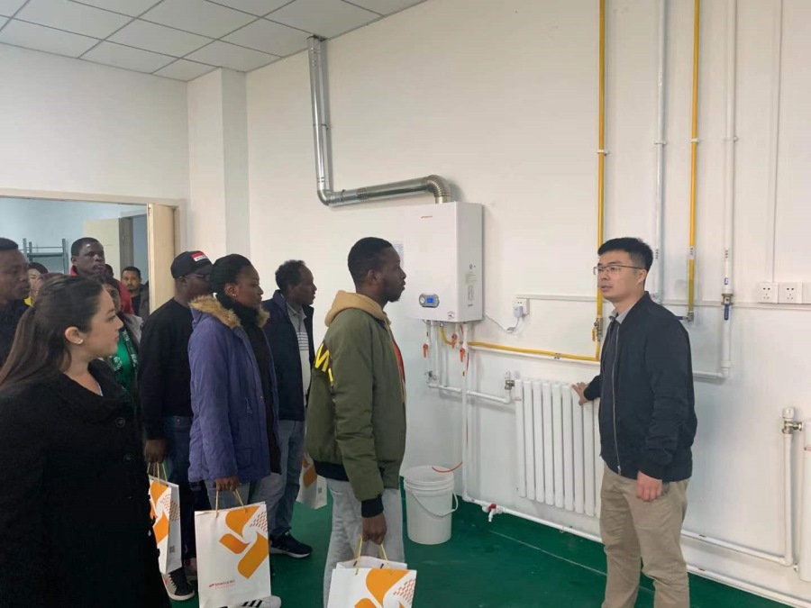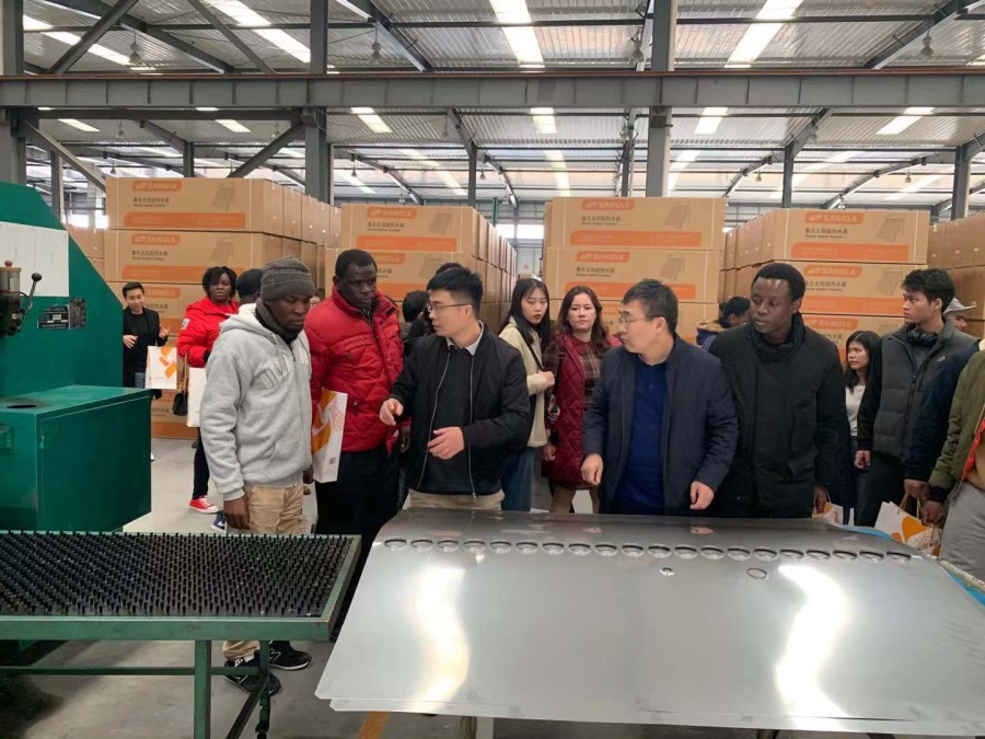 The visiting overseas students first understood the company's situation through the introduction of the company's personnel; then, under the leadership of the company and workshop technicians, the visiting guests visited the product exhibition hall, vacuum tube, flat plate, photovoltaic, wall-hanging gas-boiler and other product production lines.