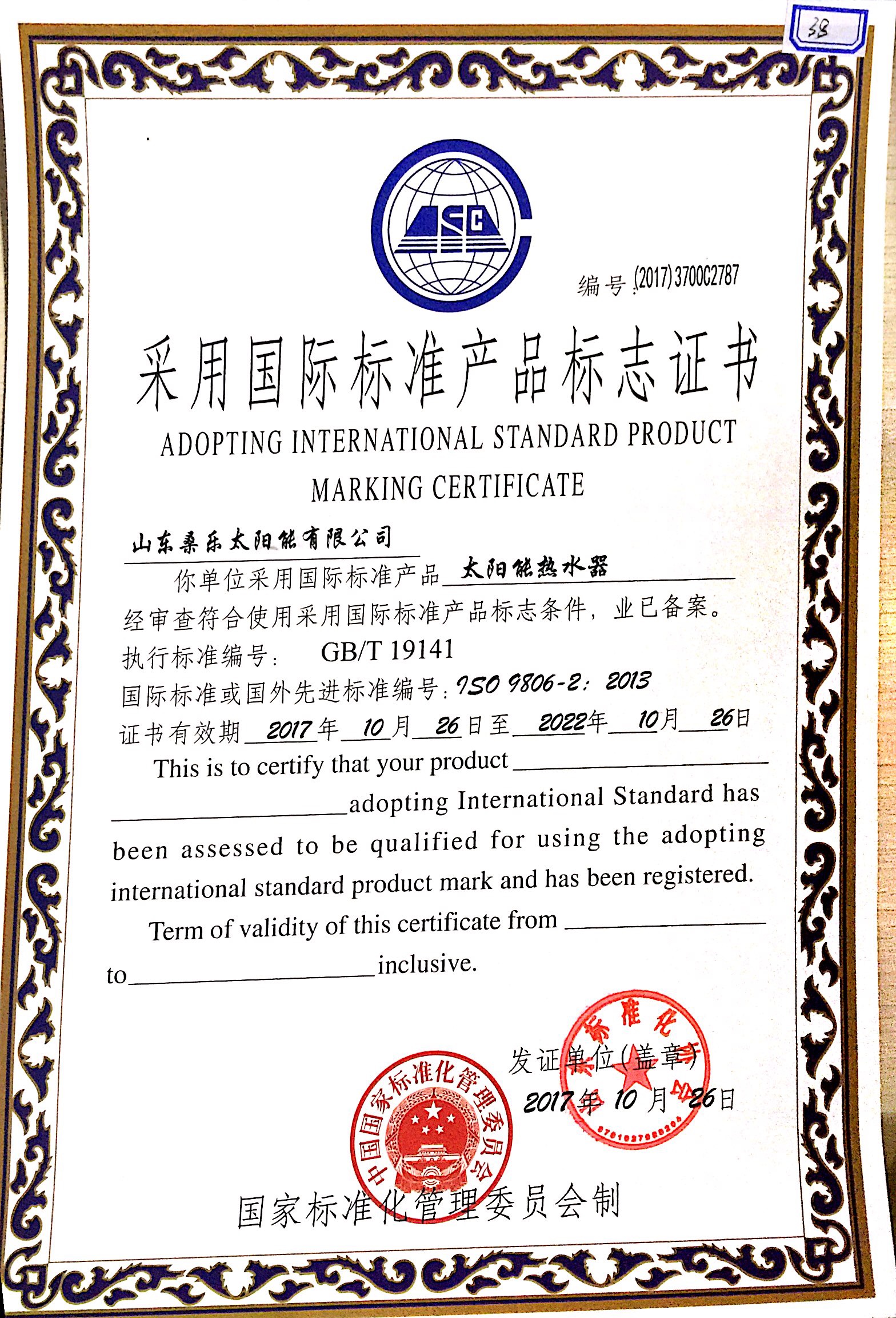 采用國(guó)際標(biāo)準(zhǔn)產(chǎn)品標(biāo)志證書
