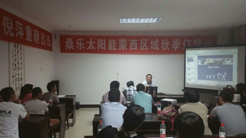 陜西公司總經(jīng)理王總參加了此次會(huì)議并講話。王總首先對(duì)未來太陽能的市場發(fā)展方向給大家做了解讀,公司會(huì)加大對(duì)經(jīng)銷商的扶持力度,加強(qiáng)在央視等媒體的投放,為各位經(jīng)銷商提供更好的創(chuàng)富平臺(tái),極大增強(qiáng)了大家做大做強(qiáng)桑樂的信心!