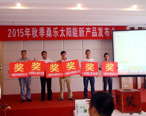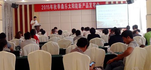 日前,桑樂(lè)公司2015年秋季太陽(yáng)能新品發(fā)布會(huì)在貴州省興義市舉行,40余位鄉(xiāng)鎮(zhèn)經(jīng)銷商參加了此次會(huì)議。會(huì)議的主題是“發(fā)展終端,布局終端,決勝終端。”