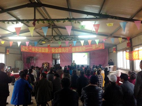 活動當(dāng)天環(huán)保事業(yè)部王經(jīng)理負(fù)責(zé)凈水培訓(xùn),代理商負(fù)責(zé)收取定金,公司人員負(fù)責(zé)現(xiàn)場講解產(chǎn)品,有一些客戶需要測試生活用水的進(jìn)行現(xiàn)場測試?;顒幼詈笪覀冞€收集了一部分臟水,以及農(nóng)藥倒入演示儀,通過凈化后,迎來了老百姓的一片掌聲,大家紛紛說桑樂的水機(jī)不但質(zhì)量過硬還價格便宜。