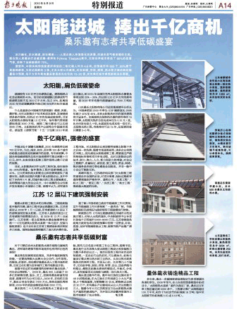 《揚(yáng)子晚報(bào)》對我公司進(jìn)軍太陽能熱利用工程市場進(jìn)行報(bào)道