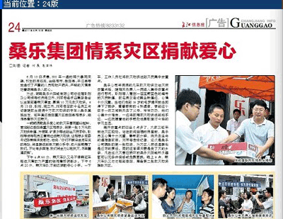 長江信息報:桑樂集團(tuán)情系災(zāi)區(qū)捐獻(xiàn)愛心