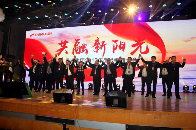 “把握生命里的每一分鐘,全力以赴我們心中的夢(mèng)”,大會(huì)在一曲激昂人心的《真心英雄》中迎來高潮。舞臺(tái)上,桑樂集團(tuán)老總們、各銷售大區(qū)經(jīng)理引吭高歌。他們唱出桑樂的新夢(mèng)想、新愿景,更唱出內(nèi)心的熱忱與憧憬。每一個(gè)為桑樂真心付出的人,都是居功至偉的英雄!