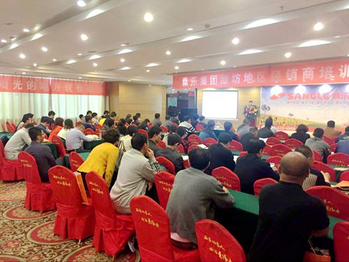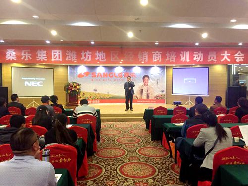 日前,桑樂(lè)山東濰坊地區(qū)經(jīng)銷商培訓(xùn)動(dòng)員大會(huì)在濰坊圣基大酒店順利舉行,桑樂(lè)集團(tuán)公司副總馮磊、光伏事業(yè)部經(jīng)理?xiàng)罟鸺t蒞臨了本次會(huì)議,并做了重要講話和培訓(xùn)。