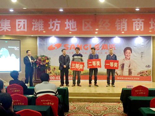 會(huì)議由濰坊區(qū)域經(jīng)理高繼偉主持,高經(jīng)理細(xì)數(shù)了桑樂(lè)集團(tuán)一年多來(lái)的巨大變化,桑樂(lè)產(chǎn)品向多元化、智能化、免維護(hù)化方向發(fā)展,公司技術(shù)日新月異,公司品牌不斷做大做強(qiáng),桑樂(lè)帶給經(jīng)銷商更多的新商機(jī),鼓勵(lì)濰坊經(jīng)銷商堅(jiān)定信心,積極做好桑樂(lè)紅五月訂貨促銷活動(dòng)。