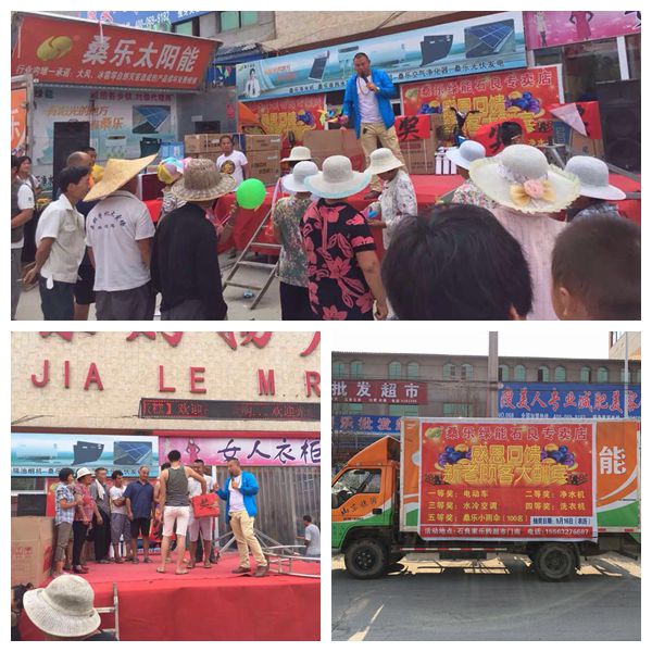 近日,桑樂集團(tuán)在蒼山縣石良村進(jìn)行回饋新老客戶大酬賓活動(dòng)?;顒?dòng)現(xiàn)場氣氛熱烈,效果顯著。蒼山縣活動(dòng)是繼“桑樂30周年,工廠直供活動(dòng)”之后又一次大型回饋新老客戶活動(dòng),桑樂蒼山石良專賣店以“桑樂綠能,送禮一夏,超值優(yōu)惠,真情回饋”的活動(dòng)傳播到蒼山縣每一個(gè)角落,這次活動(dòng),桑樂產(chǎn)品以良好的售后服務(wù)回饋于蒼山父老鄉(xiāng)親,處處彰顯出了桑樂的品牌實(shí)力。