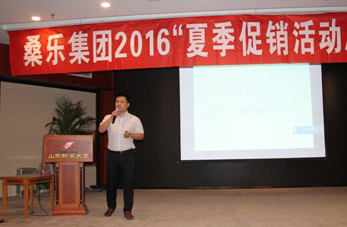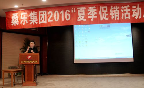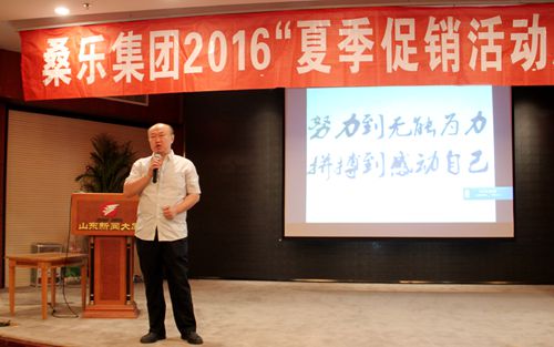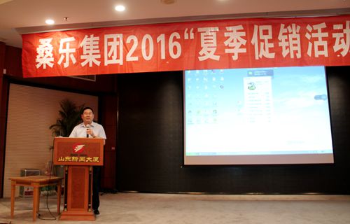 6月28日,桑樂集團(tuán)2016年“夏季促銷活動(dòng)總動(dòng)員”大會(huì)在山東濟(jì)南新聞大廈舉行,桑樂集團(tuán)全體銷售人員參會(huì),集團(tuán)董事長王雪廣蒞臨本次大會(huì)并講話。