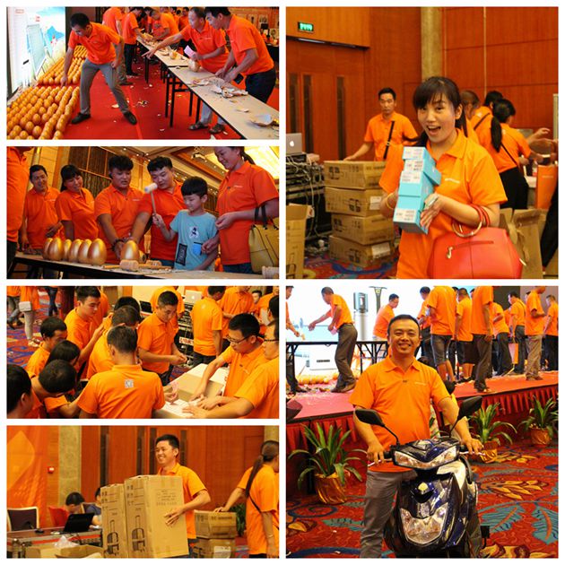 隨后,迎來了經(jīng)銷商交款砸金蛋,好運(yùn)贏大獎(jiǎng)環(huán)節(jié),把整個(gè)會(huì)場氣氛推向了高潮。一枚枚金蛋,閃著燦燦金光,隨著啪啪的敲擊聲,開出一個(gè)個(gè)巨獎(jiǎng),華為手機(jī),速派奇電動(dòng)車,蘋果手機(jī)……,誘人的獎(jiǎng)品再一次掀起了打款的高潮,銷售經(jīng)理爭先恐后,積極定貨。
