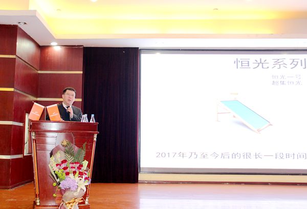 大會首先由董事長王雪廣做主旨發(fā)言。近兩年來,我國新能源產(chǎn)業(yè)進(jìn)入全新階段,市場瞬息萬變,市場對新能源產(chǎn)品及其服務(wù)的要求日益提高,多元化發(fā)展,跨界發(fā)展已然成為新能源業(yè)態(tài)新趨勢。桑樂銷售團(tuán)隊積極轉(zhuǎn)變思想,創(chuàng)新思維,立志以優(yōu)異的市場份額推動公司完成由“太陽能產(chǎn)業(yè)”到“新能源產(chǎn)業(yè)”的戰(zhàn)略轉(zhuǎn)型。桑樂要適應(yīng)新形式的變化,光熱和光伏同步發(fā)展,全力打造全國新能源研發(fā)平臺,打造現(xiàn)代化具有高效率的企業(yè)。董事長強(qiáng)調(diào),“變化是時代的主旋律”,2016年桑樂發(fā)生了幾個方面的變化,一是企業(yè)形象,品牌形象有了很大提升;二是桑樂的“陽光、空氣、水”概念,企業(yè)的戰(zhàn)略轉(zhuǎn)型,產(chǎn)品結(jié)構(gòu)調(diào)整。從單一產(chǎn)品發(fā)展到多元化產(chǎn)品,主推了太陽能、光伏家庭電站、凈水機(jī)、空氣能產(chǎn)品,推出恒光一號,超級恒光系列產(chǎn)品;三是銷售工作半年多來有了不錯的發(fā)展,“黃山行”加強(qiáng)了團(tuán)隊建設(shè),下一步銷售的核心是加強(qiáng)招商工作,改變銷售方式。
