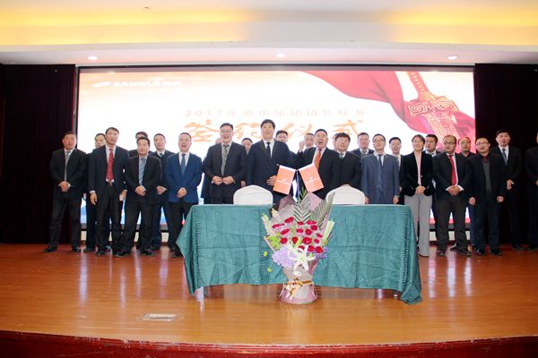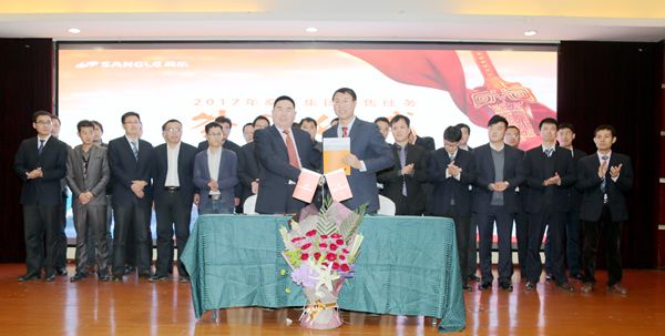 沖鋒的號角已經(jīng)吹響,桑樂集團(tuán)2017年銷售任務(wù)簽約儀式已經(jīng)開始,董事長和執(zhí)行總經(jīng)理簽署了2017年度銷售任務(wù),各分公司、辦事處也分別簽訂了年度銷售任務(wù)?!霸矤I,打勝仗”,新的一年,充滿陽光和希望,桑樂將迎來更大的輝煌。