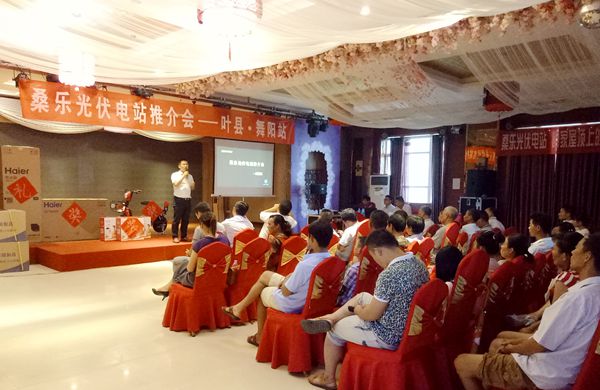 桑樂河南公司副總經(jīng)理王恩記來到會議現(xiàn)場進行了指導(dǎo),并進行了精彩發(fā)言。王經(jīng)理從光伏產(chǎn)業(yè)的發(fā)展,國家政策支持等多方面進行了剖析,讓老百姓看到了投資光伏能帶來的美好前景。
