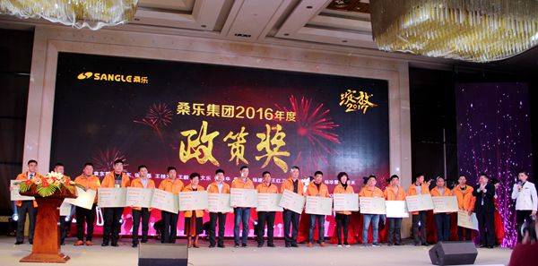 大會中桑樂集團陸續(xù)頒布了“2016年最佳合作伙伴”獎和“2016年十大新銳合作伙伴”獎,感謝每一個經(jīng)銷商們在陽光事業(yè)征程中對桑樂的信任與支持,同時感謝每一個桑樂人在各自崗位上為陽光夢想的努力奮斗,在舞臺上捧著獎杯的他們,臉上洋溢著燦爛的笑容,在場所有人都相信,這一刻屬于他們;榮耀的斬獲更激勵著在座經(jīng)銷商們,為桑樂的陽光事業(yè)不懈奮斗。