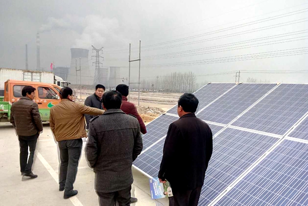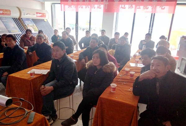 會議前期的宣傳工作至關(guān)重要,先確定了參與活動的鄉(xiāng)鎮(zhèn)及意向客戶,對客戶初步講解光伏政策,光伏收益等提高客戶的興趣,經(jīng)銷商與意向客戶多次參觀桑樂光伏電站發(fā)電設(shè)備樣板,對桑樂電站達成初步意向。