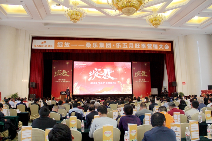 4月27日,桑樂集團(tuán)“樂五月”旺季營銷會(huì)議在泰安市海岱花園酒店舉行,山東省縣、鄉(xiāng)核心經(jīng)銷商、山東省各分公司辦事處銷售人員、全國其他分公司總經(jīng)理400多人齊聚泰山腳下,備戰(zhàn)五月旺季市場(chǎng),打響山東省“樂五月”旺季促銷攻勢(shì),桑樂集團(tuán)總經(jīng)理馬全軍先生蒞臨此次盛會(huì)。