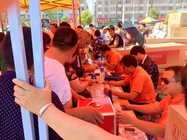冒著六月酷暑,大家積極參與,阜陽市太和縣經(jīng)銷商都參加了這場團(tuán)購會(huì),活動(dòng)現(xiàn)場積極活躍,桑樂全系列產(chǎn)品都得到大力推廣?;顒?dòng)現(xiàn)場有桑樂太陽能新品,光伏家庭電站、凈水機(jī)、電熱水器等??紤]到當(dāng)天35度的高溫,現(xiàn)場設(shè)置了專門的遮光休息區(qū),并配備了扇子、遮陽傘,給客戶提供了一個(gè)舒適的購物環(huán)境。