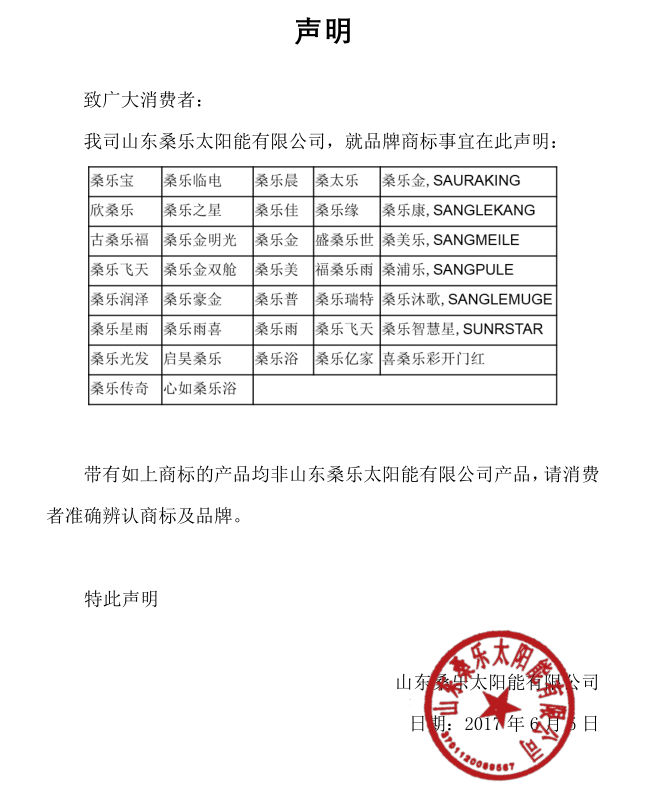 關(guān)于桑樂商標及產(chǎn)品選擇的聲明