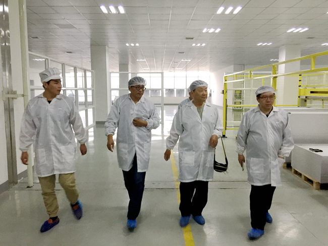 在工廠參觀過程中,賈鐵鷹秘書長(zhǎng)詳細(xì)了解工廠生產(chǎn)狀況,對(duì)桑樂全流道集熱器、光伏電池板先進(jìn)的生產(chǎn)工藝給予高度的評(píng)價(jià)。并與公司相關(guān)人員舉行了座談。集團(tuán)副總馮磊向賈鐵鷹秘書長(zhǎng)詳細(xì)介紹了桑樂集團(tuán)的發(fā)展戰(zhàn)略及生產(chǎn)經(jīng)營(yíng)情況。