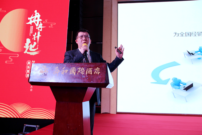 董事長(zhǎng)王雪廣先生蒞臨會(huì)議現(xiàn)場(chǎng)并發(fā)表主旨演講,首先,他代表桑樂(lè)集團(tuán)全體員工對(duì)不辭辛勞,遠(yuǎn)道而來(lái)的桑樂(lè)家人們表示熱烈的歡迎,并感謝這一年來(lái)、三年來(lái)、三十年來(lái)他們的信任、陪伴和支持。會(huì)議當(dāng)天正值大雪時(shí)節(jié),董事長(zhǎng)在現(xiàn)場(chǎng)激情濃厚的氣氛中有感而發(fā),以一首《沁園春·雪》與現(xiàn)場(chǎng)的經(jīng)銷(xiāo)商們共勉,深刻表達(dá)“數(shù)風(fēng)流人物,還看今朝,還看桑樂(lè)”的豪邁壯志。他在發(fā)言中強(qiáng)調(diào),桑樂(lè)集團(tuán)依靠雄厚的財(cái)力物力加大技術(shù)和產(chǎn)品投入,持續(xù)打擊市場(chǎng)的假冒仿冒產(chǎn)品,在未來(lái)桑樂(lè)將研發(fā)的“十二生肖”系列產(chǎn)品全面布局市場(chǎng),創(chuàng)造獨(dú)家產(chǎn)品市場(chǎng)標(biāo)識(shí),令仿冒者望而卻步,同時(shí)集團(tuán)響應(yīng)國(guó)家政策,布局多元化產(chǎn)品戰(zhàn)略,強(qiáng)力斥資進(jìn)軍燃?xì)獗趻鞝t領(lǐng)域,深度挖掘市場(chǎng)潛力,開(kāi)辟藍(lán)海營(yíng)銷(xiāo)渠道。