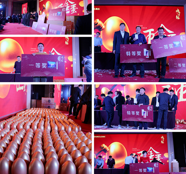 從開(kāi)場(chǎng)的紅毯造型入場(chǎng),紅包墻,到印有“冉冉升起”字樣的伴手禮,每一個(gè)環(huán)節(jié)無(wú)不體現(xiàn)桑樂(lè)的用心和誠(chéng)意。精彩的砸金蛋環(huán)節(jié)把現(xiàn)場(chǎng)氣氛推向高潮,而在激動(dòng)人心的抽獎(jiǎng)環(huán)節(jié)中,大獎(jiǎng)接踵而來(lái),經(jīng)銷(xiāo)商收獲滿(mǎn)滿(mǎn),臉上流露的笑容就是對(duì)此次大會(huì)滿(mǎn)意最好的詮釋。