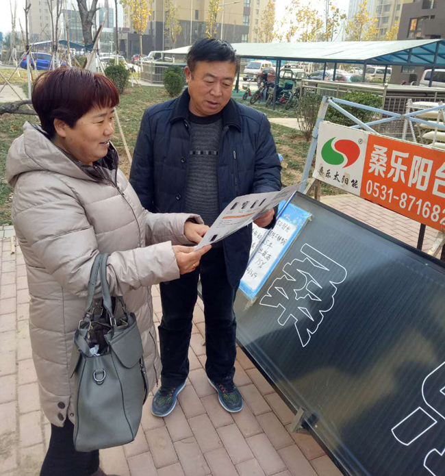 近10年來(lái),隨著中國(guó)城市化的進(jìn)程加大,在國(guó)家政策利好推動(dòng)下,濟(jì)南市100米下建筑強(qiáng)裝令的出臺(tái),陽(yáng)臺(tái)壁掛太陽(yáng)能市場(chǎng)的需求量越來(lái)越大。從平房到樓房,從樓房到高層,魯霞時(shí)刻把握城市的脈搏,哪里新小區(qū)落成就往哪里搞小區(qū)展銷活動(dòng),3個(gè)人一組,常年奔走在新建小區(qū)周圍,老式小區(qū)則采取“以舊換新”的模式,每個(gè)周末必有桑樂(lè)臨時(shí)搭建的帳篷,她們就像流動(dòng)紅旗,走遍城市的大小角落,魯霞從小做到大,從弱做到強(qiáng),處處都有她辛勤勞作的身影,一年下來(lái)竟也積攢了不小的成績(jī)。