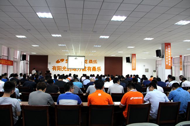 培訓(xùn)會(huì)議上,桑樂(lè)集團(tuán)光熱工程、光伏、空氣能、凈水、廚衛(wèi)等領(lǐng)域的專業(yè)技術(shù)人員于洪文、孫向東、丁海學(xué)、梁慶彬、唐強(qiáng)分別進(jìn)行了培訓(xùn)分享。他們從空氣能產(chǎn)品知識(shí)、光伏電站工作原理、運(yùn)營(yíng)維護(hù),煙機(jī)灶具、電熱水器構(gòu)造安裝知識(shí),凈水機(jī)維護(hù)保養(yǎng)、工程招投標(biāo)基礎(chǔ)等多個(gè)方面進(jìn)行了詳細(xì)的講解,讓大家深刻領(lǐng)會(huì)到產(chǎn)品使用、客戶購(gòu)買、售后安裝過(guò)程中涉及到的專業(yè)技術(shù)。所有受訓(xùn)人員對(duì)集團(tuán)產(chǎn)品加強(qiáng)了認(rèn)知、認(rèn)同,對(duì)客戶消費(fèi)目標(biāo)有了更進(jìn)一步的了解、定位。