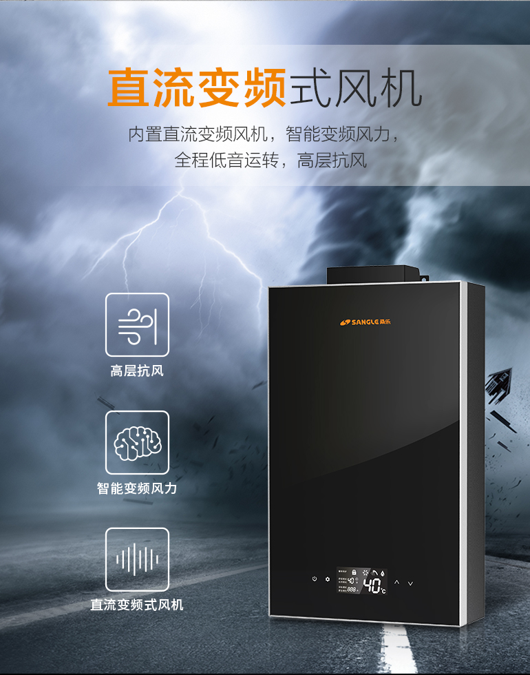 桑樂燃?xì)鉄崴?,采用直流變頻式風(fēng)機(jī),可實(shí)時監(jiān)測室外風(fēng)壓變化情況,保證持續(xù)的氧氣供應(yīng),維持高效、充分、穩(wěn)定燃燒;自動調(diào)整輸出轉(zhuǎn)速來對抗外部風(fēng)壓變化,快速實(shí)現(xiàn)恒定水溫,將波動范圍控制在±1℃,真正做到無感溫差,讓寶寶嬌嫩、敏感的肌膚不再受到水溫偏差的刺激,洗浴更舒適;智能風(fēng)壓補(bǔ)償技術(shù),頂驅(qū)式風(fēng)機(jī),抗風(fēng)、抗凍,不懼狂風(fēng)暴雪,最大可抗八級大風(fēng)。