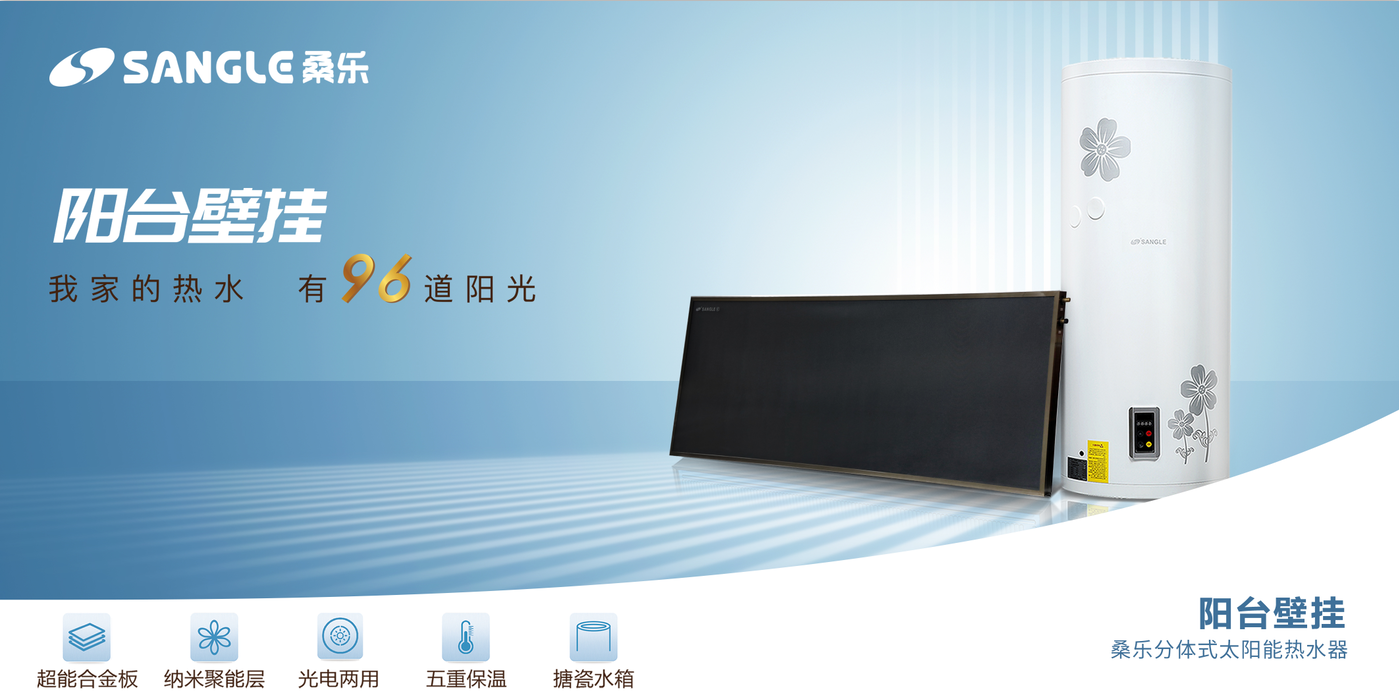 桑樂的分體式陽臺壁掛太陽能熱水器產(chǎn)品就能滿足你的這些需求,這款產(chǎn)品結(jié)合了中外合資科技、6項專利技術(shù)、8大匠心生產(chǎn)工藝于一身,是分體太陽能熱水器產(chǎn)品里不折不扣的Super Man。