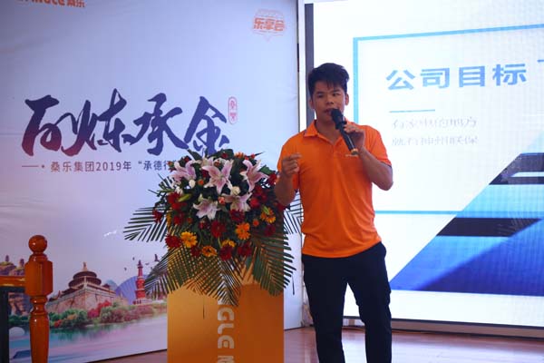 7月18日, “百煉承金——桑樂集團(tuán)2019年承德行樂享會”會議正式在承德云山飯店拉開帷幕。在會議中,桑樂集團(tuán)董事長王雪廣先生做了主旨發(fā)言,他首先代表桑樂集團(tuán)歡迎從全國各地遠(yuǎn)道而來的經(jīng)銷商家人們,并向他們表示真誠的問候,隨后在報(bào)告中指出:2018年在云臺山發(fā)布的多元化戰(zhàn)略經(jīng)過一年的嚴(yán)謹(jǐn)籌備、立體布局已經(jīng)取得了可喜的成績,這離不開以在座各位為代表的工程商、渠道商家人的信任與支持,在未來,桑樂電器、桑樂衛(wèi)浴、桑樂綠色建筑一體化都將接踵而至,打造屬于我們桑樂的“盛世王朝”。