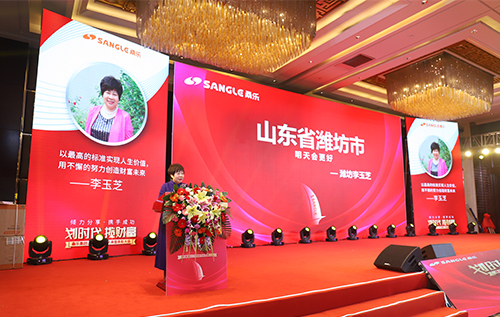 首先是紅旗先鋒李玉芝。她在1996年正式加盟桑樂,是功勛經(jīng)銷商的代表,見證了桑樂一路以來(lái)的沉浮與創(chuàng)變。24年來(lái)她巾幗不讓須眉,精耕細(xì)作當(dāng)?shù)厥袌?chǎng),連年超額完成年度簽約任務(wù),二十幾年如一日,專注桑樂攜手同行,將濰坊打造成桑樂的紅旗陣地,締造了一個(gè)個(gè)綠能佳話。