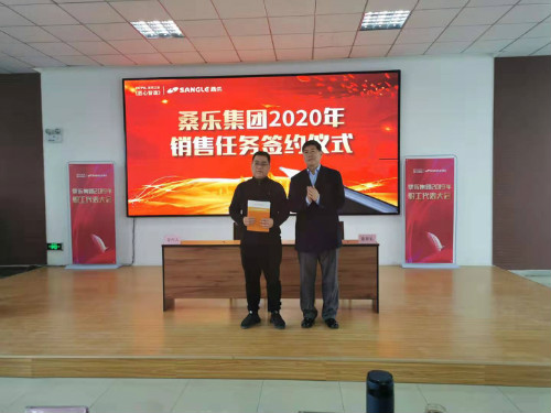 會議第二個環(huán)節(jié)是年度優(yōu)秀表彰環(huán)節(jié),董事長逐個為年度先進標兵和技術創(chuàng)新團隊頒獎,馮總,副總經理總廠廠長趙中強,總經理助理遲立群,總經理助理國升分別為優(yōu)秀員工頒獎。會議的第三個環(huán)節(jié),董事長同各銷售單位簽訂了2020年銷售任務書,通過全年銷售任務、零售任務、招商任務、重點品類銷售任務的簽約,集團全體人員目標清晰團結一致,共同向全面完成2020年集團任務吹響了沖鋒的號角。