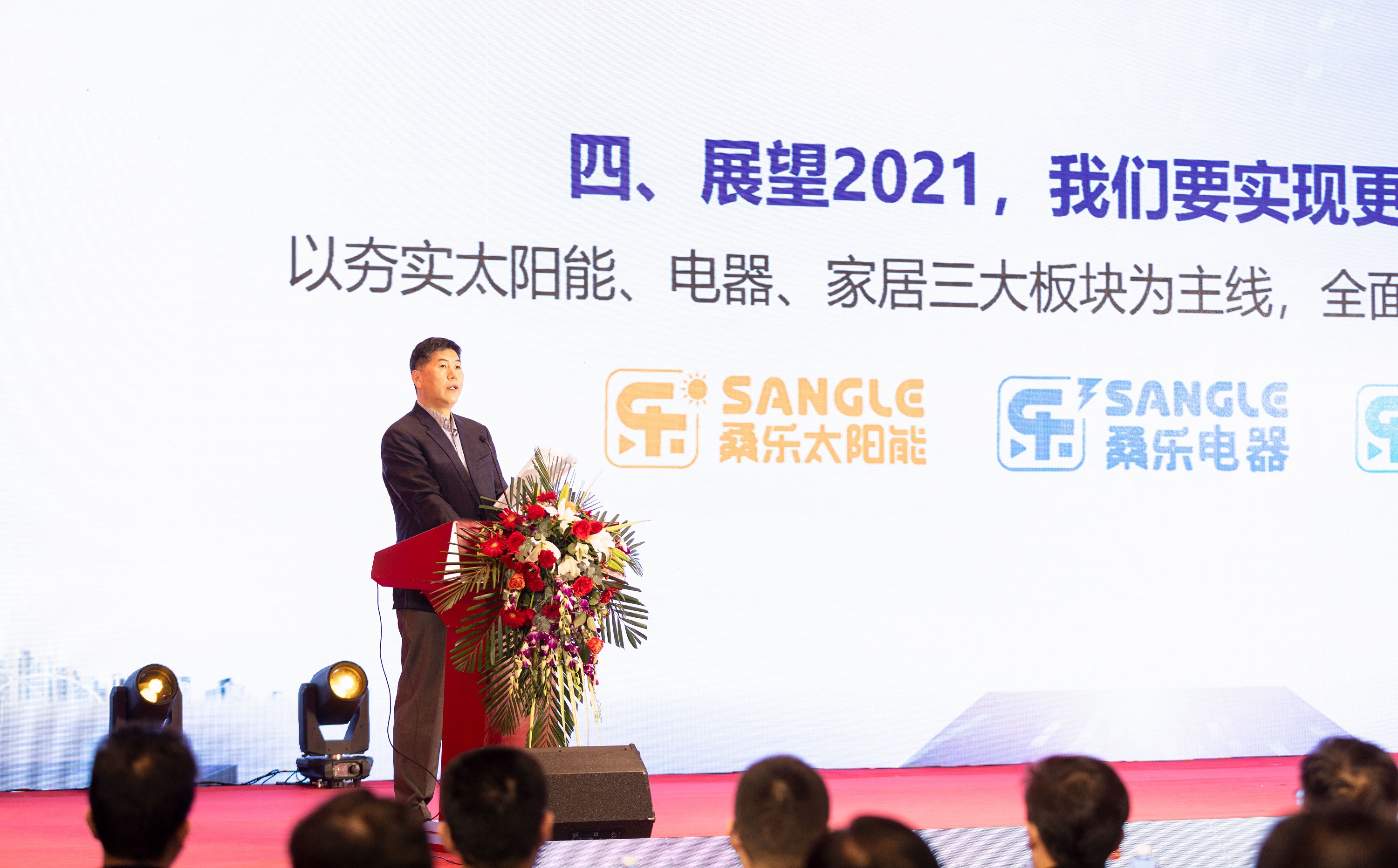 會上,董事長王雪廣發(fā)表主旨演講。首先,他代表桑樂集團全體員工向遠(yuǎn)道而來的桑樂經(jīng)銷商們表示熱烈的歡迎和最真誠的問候。他表示,面對疫情下的銷售困境,集團打響了化危為機的攻堅戰(zhàn),創(chuàng)新布局新零售,打造“線上+線下”融合發(fā)展新體系,取得了全年業(yè)績同比增長20%的可喜成績,這些成績的取得與廣大的桑樂經(jīng)銷商家人們的辛苦付出和大力支持是密不可分的。更值得一提的是,桑樂已開啟集團化發(fā)展征程,今后將繼續(xù)加強各項工作的推進,達成集團全方位發(fā)展。展望2021年,集團要實現(xiàn)更大的突破,以夯實太陽能、電器、家居三大版塊為主線,全面提升銷售業(yè)績,堅持新零售模式,健全“云平臺”服務(wù)體系。桑樂的美好藍(lán)圖已徐徐展開,希望在座的桑樂經(jīng)銷商家人們能夠滿懷信心,團結(jié)一致,與集團攜手并進,為實現(xiàn)共同的桑樂夢想而努力奮斗。