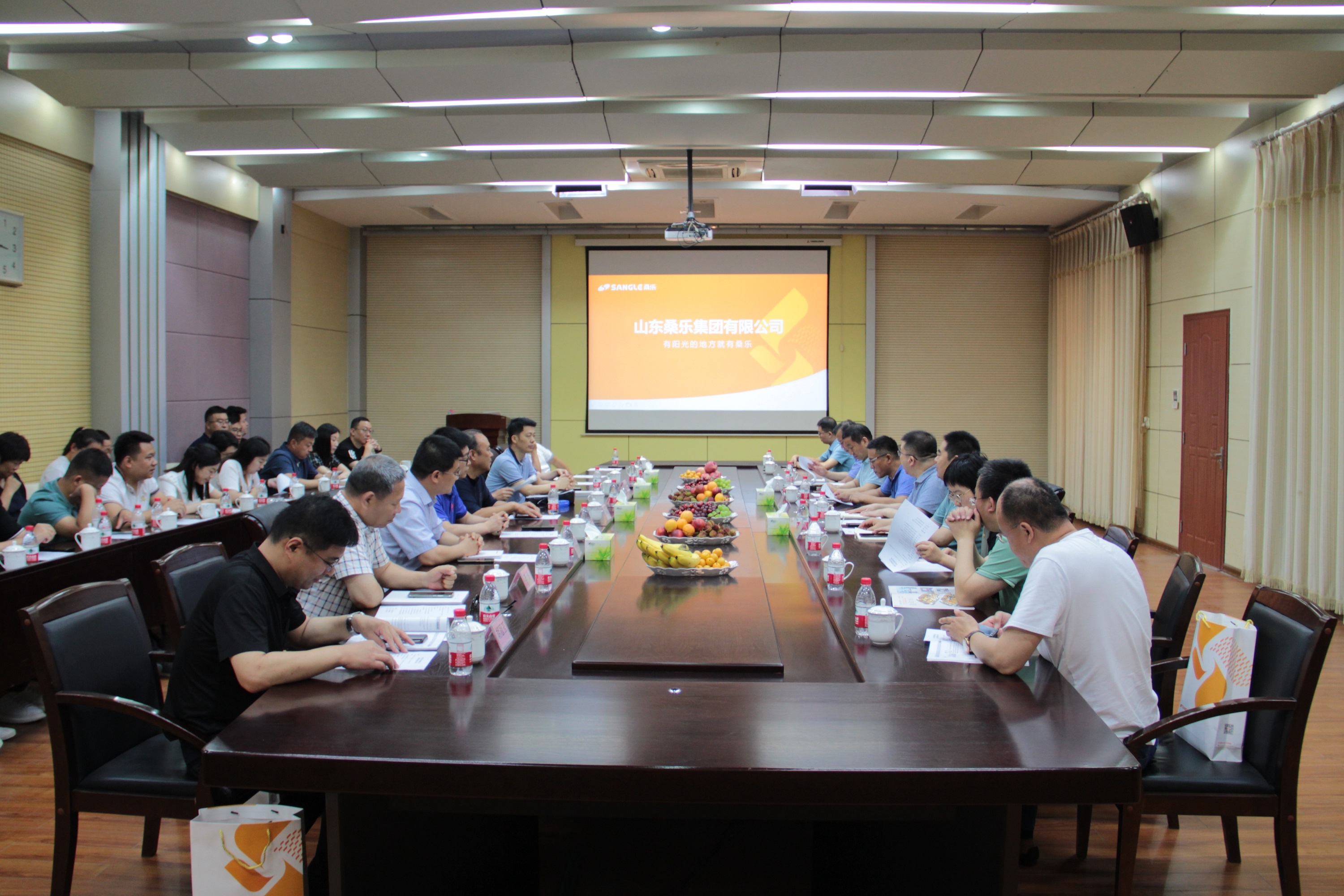 6月19日上午,濟(jì)南大學(xué)濟(jì)南校友會(huì)一行到桑樂集團(tuán)進(jìn)行交流洽談。濟(jì)南校友會(huì)會(huì)長(zhǎng)張偉,執(zhí)行會(huì)長(zhǎng)彭震以及30余名濟(jì)南校友會(huì)成員參加會(huì)議。桑樂集團(tuán)常務(wù)副總經(jīng)理馮磊,副總經(jīng)理、總廠廠長(zhǎng)趙中強(qiáng),副總經(jīng)理張興東,副總經(jīng)理、總會(huì)計(jì)師周鋒等領(lǐng)導(dǎo)接待參會(huì)。