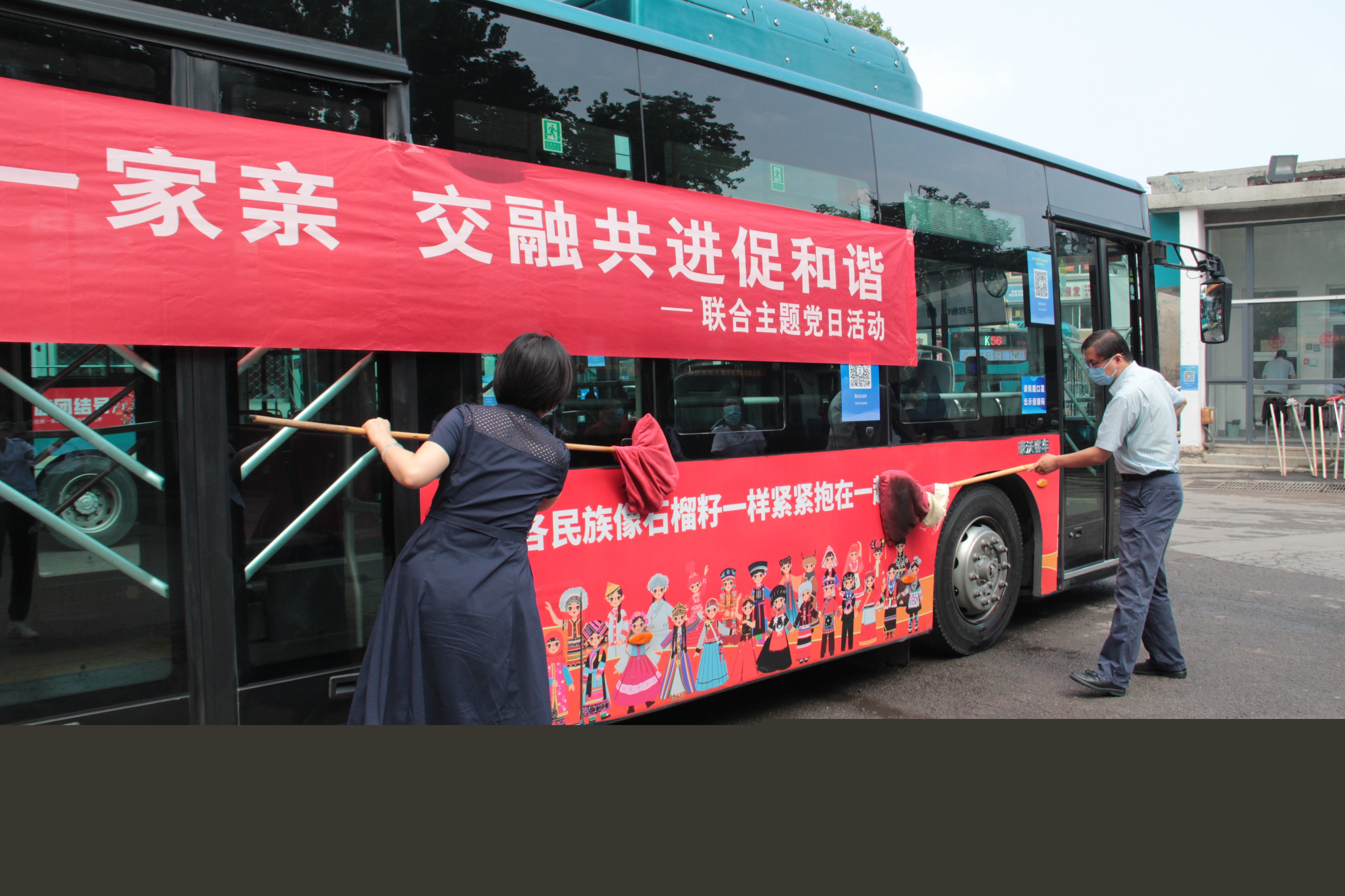 為進一步開展民族團結(jié)進步宣傳活動,黨員代表們一同在車輛始發(fā)站點為乘車市民贈送“民族團結(jié)一家親 同心共筑中國夢”宣傳品,將鑄牢中華民族共同體意識和民族團結(jié)進步理念融入群眾日常生活中。